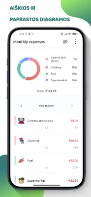 Mėgaukitės galimybe pritaikyti pagrindinį ekraną pagal savo poreikius: rinkitės matyti išsamias vizualizacijas, konkrečių kategorijų apžvalgas ar tiesioginį balansą. Gilinkitės į savo finansus su išsamiomis ataskaitomis ir aiškiomis diagramomis, kurios leis lengvai suprasti išlaidų tendencijas ir biudžeto dinamiką. Nesvarbu, ar tvarkote asmenines lėšas, planuojate šeimos biudžetą, ar stebite smulkaus verslo finansus – ši priemonė leidžia efektyviai valdyti kelias sąskaitas ir skirtingas valiutas vienoje vietoje, užtikrinant maksimalų lankstumą.