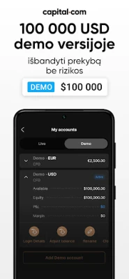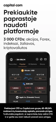 Atraskite prekybos potencialą su Capital.com – Jūsų vartais į dinamišką finansų rinkų pasaulį. Prisijunkite prie milžiniškos daugiau nei 750 000 prekiautojų bendruomenės ir pasinerkite į plačiausią CFD rinkų asortimentą. Su Capital.com, turite galimybę prekiauti daugiau nei 4800 išvestinių finansinių priemonių – nuo populiariausių akcijų ir indeksų (pvz., SP500, US100) iki valiutų porų, tauriųjų metalų, energetikos išteklių, ETF ir netgi kriptovaliutų*. Capital.com suteikia prieigą prie turto, kuris formuoja pasaulio ekonomiką, leidžiant Jums reaguoti į rinkos judesius ir siekti savo finansinių tikslų.