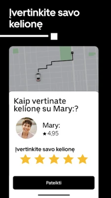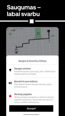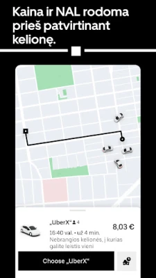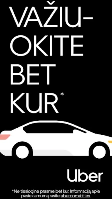 Galimybė lengvai judėti dabar yra jūsų rankose. Tiesiog atidarykite programėlę, nurodykite savo kelionės tikslą ir išsirinkite transporto priemonę, atitinkančią jūsų konkrečius poreikius. Nuo to momento, kai užsakote kelionę, iki saugaus atvykimo į paskirties vietą, „Uber" siekia teikti aukščiausios kokybės paslaugas. Mūsų įsipareigojimas kokybei reiškia, kad kiekviena kelionė yra valdoma atsargiai, suteikiant jums patikimą ir malonų važiavimą.